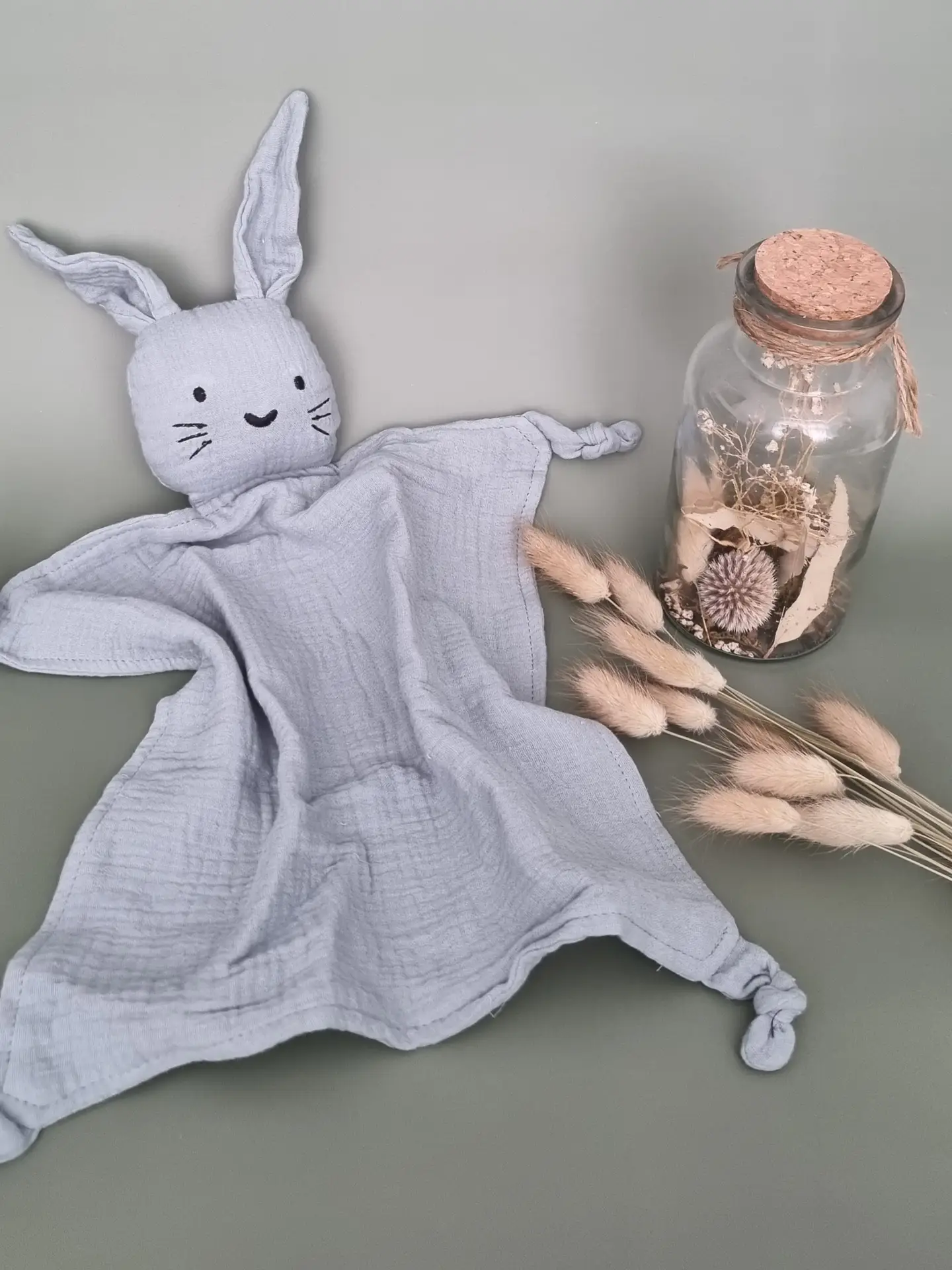 Kas pole mitte armas? Pehme musliinist kaisujänes, kelle seltsis on mõnus nii mängida kui ka uinuda. Õrn ja kerge materjal sobib hästi väikestele kätele ning pakub turvatunnet igal hetkel.