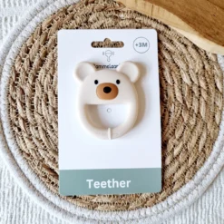Kui hammaste tulek teeb pisikese rahutuks, on see pehme ja painduv silikoonist närimislelu heaks abiliseks. Karukujuline disain on mõnus haarata ning neutraalne beež toon sobitub kaunilt iga komplektiga.